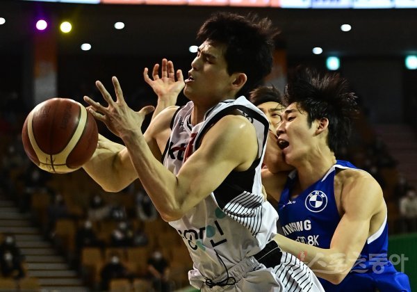 21일 서울 잠실실내체육관에서 열린 ‘2021-2022 KGC 인삼공사 정관장 프로농구’ 서울 삼성과 수원 KT의 경기에서 KT 하윤기가 삼성 이원석과 리바운드 경합을 벌이고 있다.