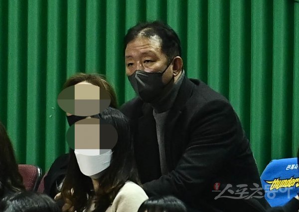 21일 서울 잠실실내체육관에서 열린 ‘2021-2022 KGC 인삼공사 정관장 프로농구’ 서울 삼성과 수원 KT의 경기에서 허재 전 감독이 경기를 지켜보고 있다.