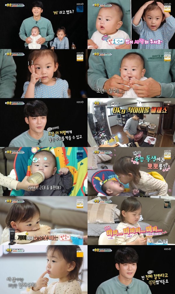 21일 KBS2 \'슈퍼맨이 돌아왔다\'(이하 \'슈돌\') 408회는 ‘육아는 느리고 단단히\'라는 부제로 시청자를 찾아왔다. 그중 배우 김진우와 그의 딸 단희, 그리고 아들 문호의 달콤살벌한 일상이 큰 웃음을 선사했다.