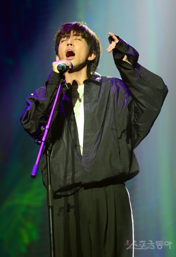 가수 이승윤이 24일 서울 용산구 노들섬 라이브하우스에서 열린 정규 앨범 ‘폐허가 된다 해도’ 발매 쇼케이스에서 공연을 펼치고 있다.