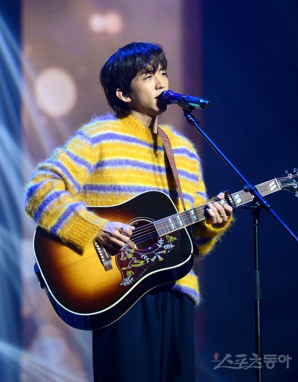 가수 이승윤이 24일 서울 용산구 노들섬 라이브하우스에서 열린 정규 앨범 ‘폐허가 된다 해도’ 발매 쇼케이스에서 공연을 펼치고 있다.