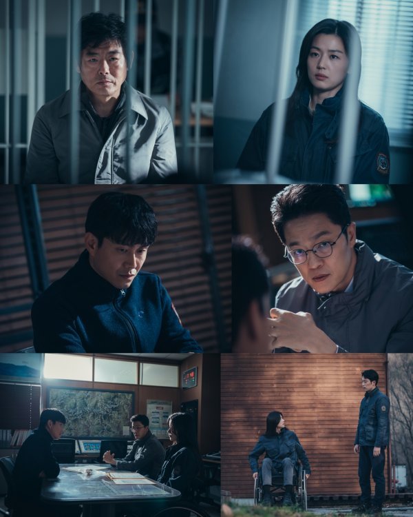 먼저 공개된 사진 속에는 서이강과 조대진이 경찰서 유치장에서 독대 중인 모습이 담겨 있어 충격을 더한다. 우직한 리더 조대진과 그를 믿고 따르던 서이강이 면회실 칸막이에 가로막혀 대화를 나누는 현실이 좀처럼 믿을 수 없게 만든다.
