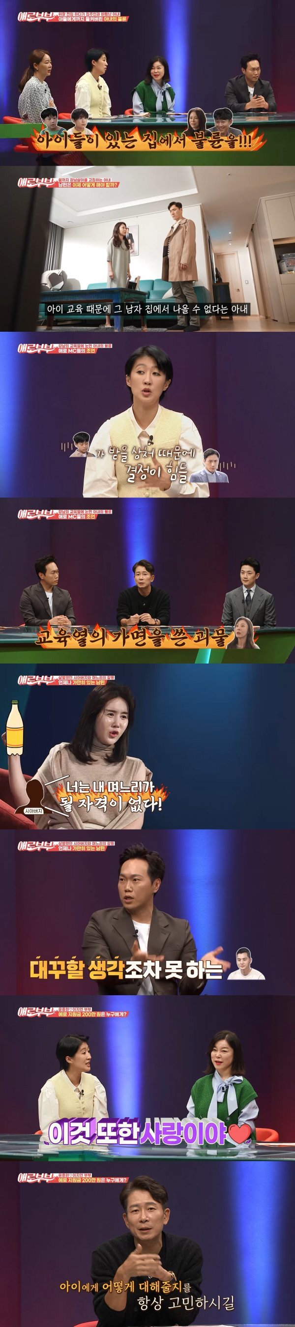 27일 ‘애로부부’에서는 비뚤어진 교육열로 교육 1번지 강남에 입성했지만 아들까지 공범으로 만들며 불륜을 저지른 아내의 사생활 이야기 ‘애로드라마-강남 엄마’가 공개됐다. 영재 교육원까지 추천받을 정도로 뛰어난 성적의 초등학생 아들을 둔 부부는 수도권의 한 지역에서 행복한 생활을 이어갔다. 그러던 중 아내의 친구가 ‘교육 1번지’ 강남으로 이사간 후 아이의 성적 상승세로 만족한다는 소식이 들려왔다. 그 이후로 아내는 남편에게 “강남으로 이사가자”며 노래를 불렀다.