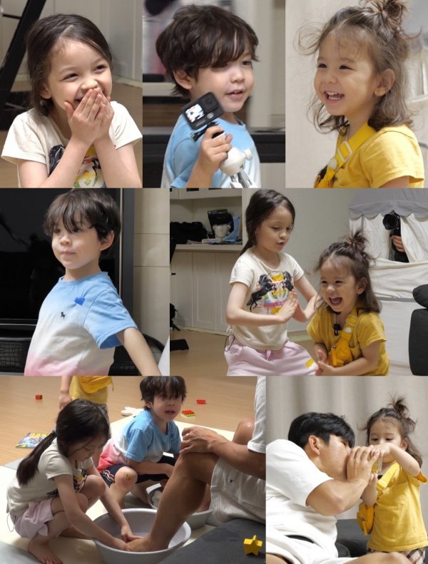 또 아이들은 아빠를 위한 족욕 서비스까지 준비했다. 그러나 이번에도 어김없이 물을 사랑하는 진우가 족욕용 물에 관심을 보이며 순간 모두의 긴장을 자아냈다.