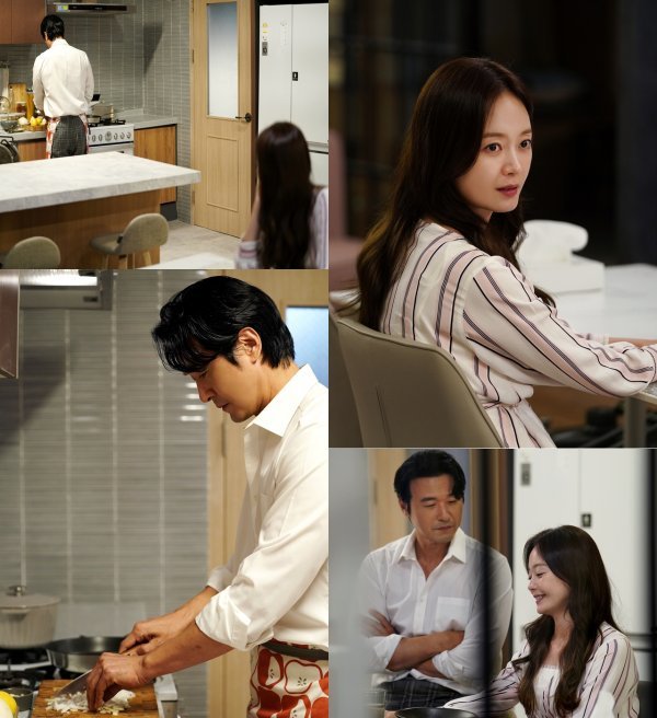 먼저 신명섭은 앞치마까지 두르고 요리에 열중하고 있다. 이를 바라보는 윤미라의 눈빛에는 애정이 가득하다. 이어 윤미라는 신명섭이 만들어준 음식을 맛있게 먹고, 신명섭은 그런 그녀를 사랑스럽게 지켜본다. 너무나 자연스러워 보이는 두 사람의 모습이 마치 함께 사는 부부 같은 분위기를 자아낸다.