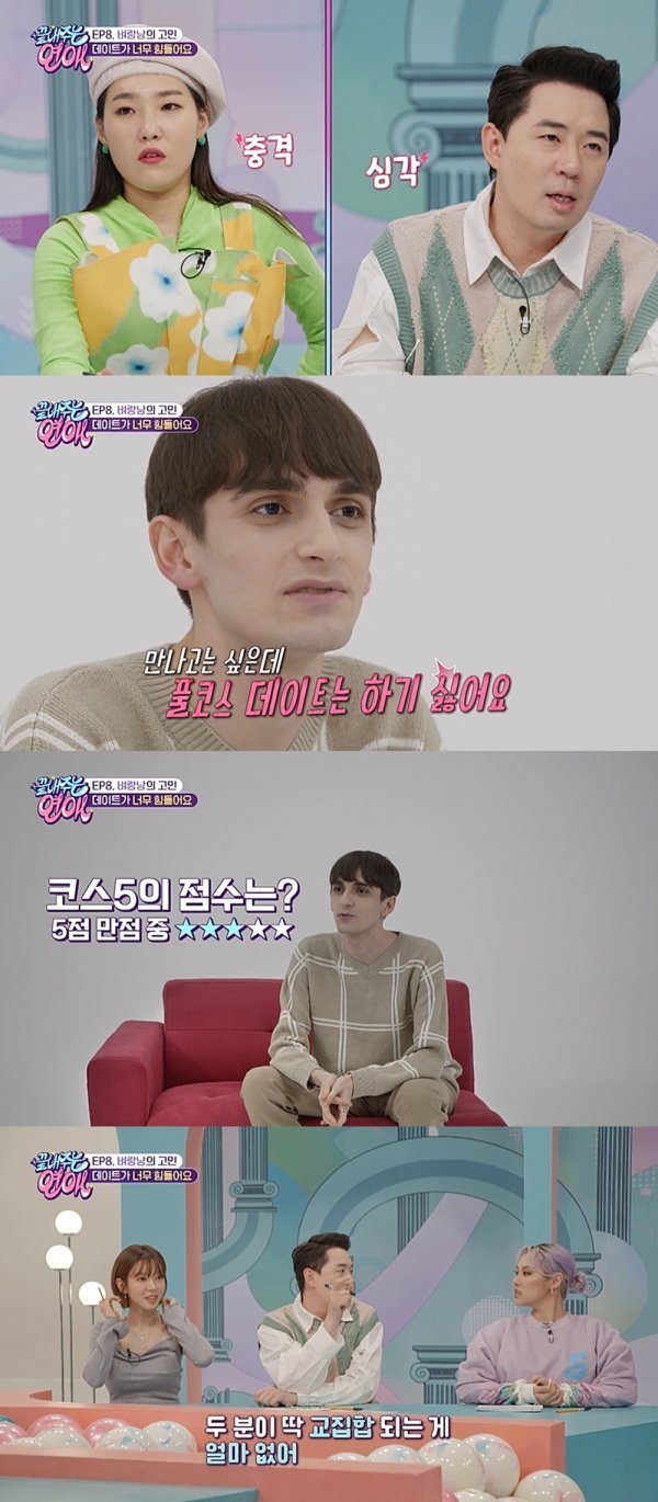 ‘벼랑 끝 커플’은 데이트를 위해 방문하는 장소마다 상극의 태도를 보인다는 후문이다. 완전히 다른 커피 취향부터 극과 극 입맛까지, 맞는 것 하나 없는 이들의 모습에 붐은 “이렇게 다른 건 처음 본다”라며 웃음을 멈추지 못한다.