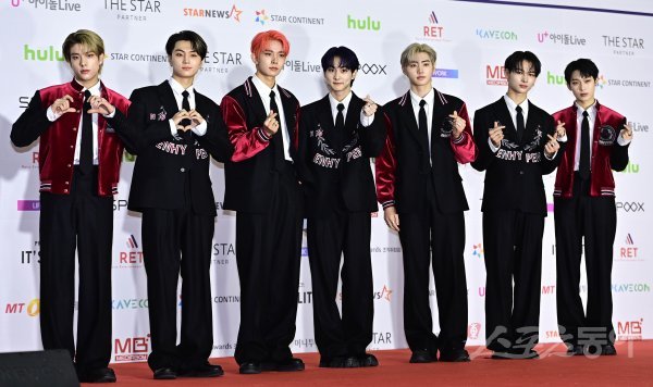 그룹 엔하이픈이 2일 서울 강서구 화곡동 KBS아레나에서 열린 ‘2021 AAA(ASIA ARTIST AWARDS, 아시아 아티스트 어워즈)’ 레드카펫 포토월에서 포즈를 취하고 있다.