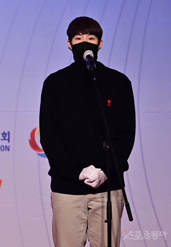6일 서울 중구 롯데호텔서울에서 열린 ‘MEDIHEAL과 함께하는 2021 동아스포츠대상‘ 시상식에서 여자프로배구 올해의 선수상을 수상한 KGC 인삼공사 이소영이 소감을 말하고 있다. ‘MEDIHEAL과 함께하는 2021 동아스포츠대상’은 스포츠동아가 동아일보, 채널A, MEDIHEAL(메디힐)과 공동으로 주최하고 국내 5대 프로스포츠(프로야구·프로축구·남녀프로농구·남녀프로배구·남녀프로골프) 종목별로 올 한해를 빛낸 최고의 선수를 선수들이 직접투표로 선정하는 국내 유일의 시상식이다.