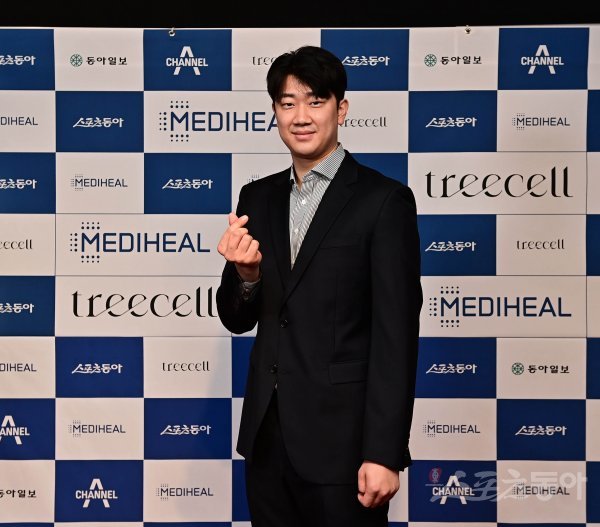6일 서울 중구 롯데호텔서울에서 열린 ‘MEDIHEAL과 함께하는 2021 동아스포츠대상‘ 시상식 포토월에서 우리카드 나경복이 기념 촬영을 하고 있다. ‘MEDIHEAL과 함께하는 2021 동아스포츠대상’은 스포츠동아가 동아일보, 채널A, MEDIHEAL(메디힐)과 공동으로 주최하고 국내 5대 프로스포츠(프로야구·프로축구·남녀프로농구·남녀프로배구·남녀프로골프) 종목별로 올 한해를 빛낸 최고의 선수를 선수들이 직접투표로 선정하는 국내 유일의 시상식이다.