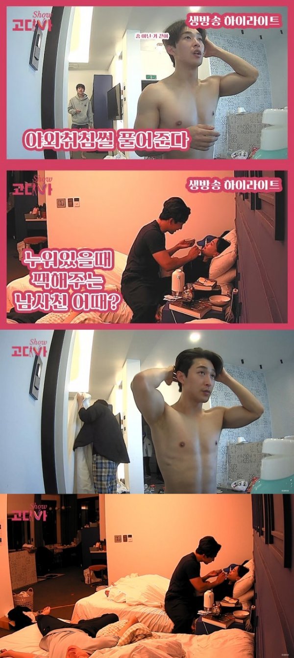 최근 ‘고디바 SHOW’ 측은 유튜브 채널 ‘GODIVA SHOW TV’를 통해 ‘누워있을 때 팩해주는 남사친 어때?’, ‘강운이 풀어주는 야외취침 썰’이라는 타이틀의 하이라이트 영상을 공개했다. 공개된 영상 속 강운은 야외 취침을 끝내고 재정비 중이며, 또 다른 영상에서는 편강윤과 꽁냥 무드를 뿜어내고 있다.