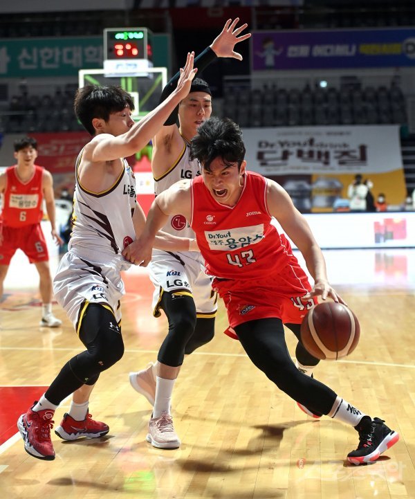 8일 경기도 고양체육관에서 열린 ‘2021-2022 프로농구’ 고양 오리온과 창원 LG 경기에서 오리온 이대성이 LG의 수비를 뚫고 골밑을 공격하고 있다.