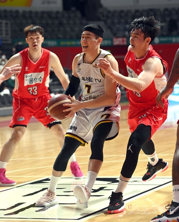 8일 경기도 고양체육관에서 열린 ‘2021-2022 프로농구’ 고양 오리온과 창원 LG 경기에서 LG 이관희가 오리온의 수비를 뚫고 골밑을 공격하고 있다.