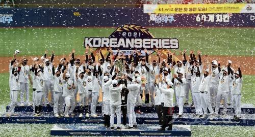 KT의 마법은 계속됐다. 두산과의 한국시리즈 1~4차전을 싹쓸이하며 당당하게 정상에 섰다. 상대팀 두산도 와일드카드부터 계속 기적을 만들며 한국시리즈까지 올라왔지만 체력소진에서 원인을 찾을 수 있는 타격부진으로 KT의 마운드를 넘어서지 못했다.