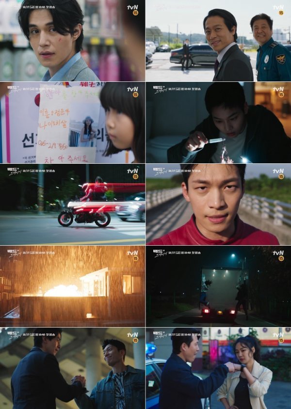 특히 속도감 넘치는 오토바이 액션은 물론 건물 폭발과 함께 몸이 날아가고 달리는 대형 트럭 문에 매달리는 등 이동욱과 위하준의 온 몸 내던진 액션 투혼이 긴장감 넘치는 추적 속 강렬한 드라마를 선보일 것을 예고했다.