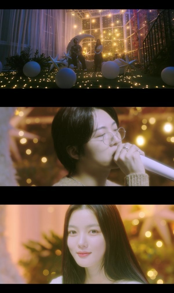 영상 속 김유정과 기리보이는 겨울 분위기를 물씬 풍기는 화려한 전구들이 가득한 공간 속에서 의자에 앉아 따뜻하면서도 아련한 감성을 자아냈다.