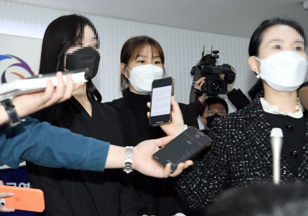 10일 서울 마포구 상암동 한국배구연맹에서 IBK기업은행 조송화의 무단 이탈 관련 상벌위원회가 열렸다. 조송화가 기자회견을 바라보고 있다.
