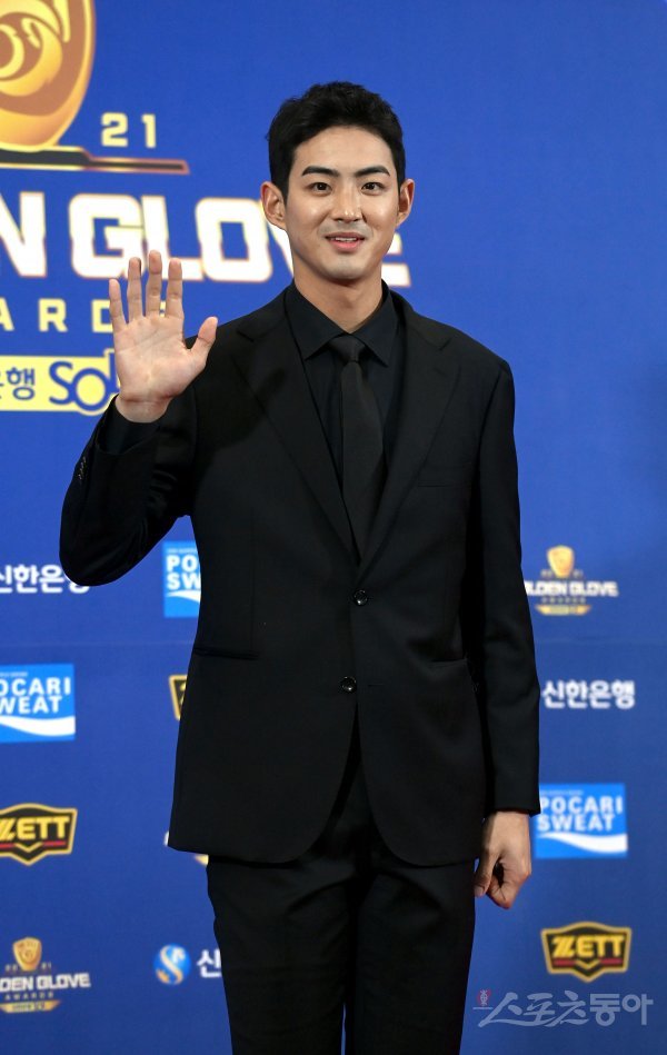‘2021 신한은행 SOL KBO리그’ 골든글러브 시상식이 10일 서울 코엑스 오디토리움에서 개최됐다. 포토월에서 삼성 구자욱이 포즈를 취하고 있다.