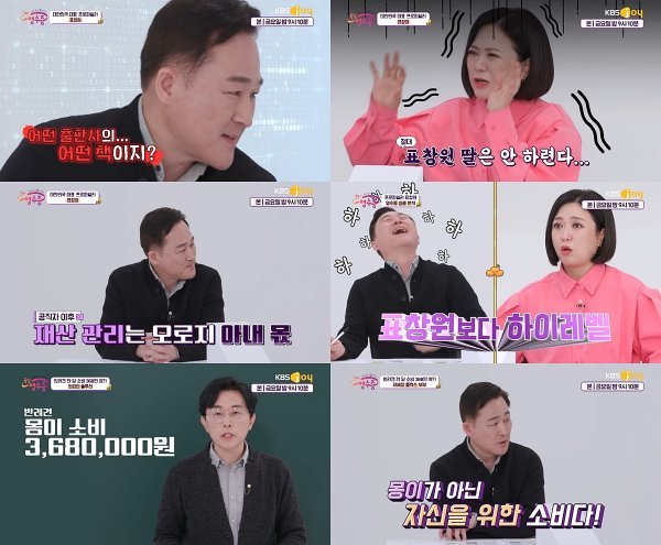 결국 표창원은 "이 분은 반려견을 위한다고 하지만 실제로는 본인의 만족을 추구하고 있는 거다"라고 일침을 가했고, 김경필 멘토 역시 "반려견 스스로도 알 수 없는 소비가 심하다. '결제 3심제' 도입이 시급하다"라고 진단하며 '오적 철폐, 237 적금통장'을 추천해 시청자들의 고개를 끄덕이게 만들었다.