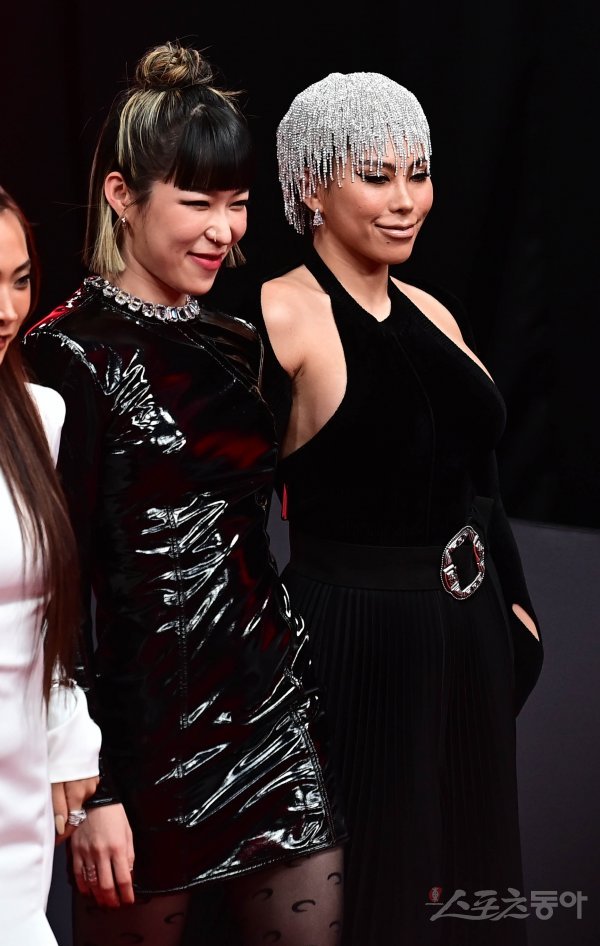 스트릿우먼파이터 출연자 효진초이, 가비가 11일 경기도 파주 CJ ENM 스튜디오 센터에서 열린 ‘2021 MAMA(Mnet 아시아 뮤직 어워즈)’ 레드카펫에서 입장하고 있다.