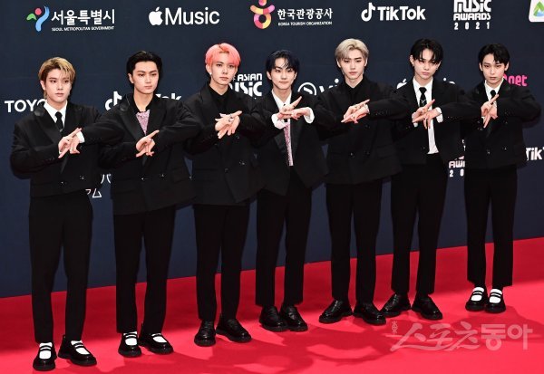 그룹 엔하이픈이 11일 경기도 파주 CJ ENM 스튜디오 센터에서 열린 ‘2021 MAMA(Mnet 아시아 뮤직 어워즈)’ 레드카펫에서 포즈를 취하고 있다.