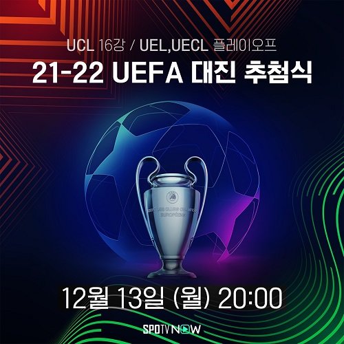 21-22 UEFA 대진 추첨식은 오늘(13일 월요일) 저녁 8시 스포티비(SPOTV), 스포티비 온(SPOTV ON) 그리고 스포티비 나우(SPOTV NOW)에서 생중계된다.