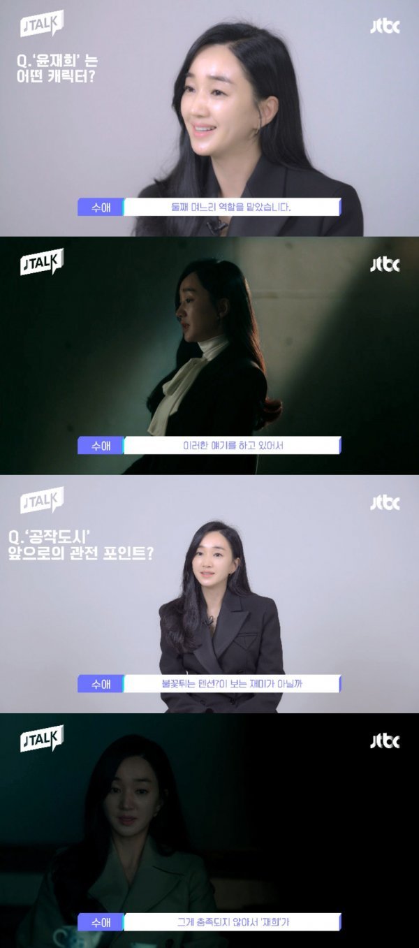 JTBC 수목드라마 ‘공작도시’(극본 손세동/ 연출 전창근/ 제작 하이스토리디앤씨, JTBC스튜디오)에서 대한민국을 쥐락펴락하는 성진그룹의 둘째 며느리 윤재희로 돌아온 수애의 JTALK(제이톡) 영상이 공개됐다.