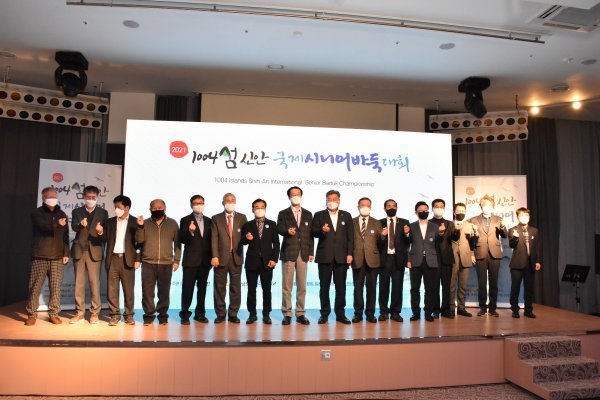 한 시대를 풍미했던 전설의 고수들이 출사표를 낸 ‘2021 1004섬 신안 국제시니어바둑대회’ 개막식이 20일 전라남도 신안 엘도라도 리조트에서 열렸다.