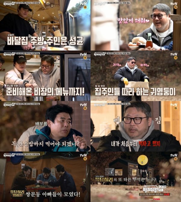 제작진에 따르면 이날 tvN 드라마 ‘응답하라 1988’(약칭 응팔)에 출연했던 최무성과 김성균이 오랜만에 성동일과 재회한다. 범상치 않은 풍채를 뽐내며 ‘바달집’(바퀴 달린 집 약칭)을 찾은 ‘택이 아빠’ 최무성과 ‘정팔이 아빠’ 김성균. 그냥 걷기만 해도 범죄 누아르 분위기를 자아내고, 칼질도 비범해보이는 두 사람의 등장에 절로 공손해지는 김희원과 공명. 이에 장난기가 발동한 큰 형님 성동일이 공명에게 “여기 있는 선배 4명 중에 누가 제일 착해 보이냐”라는 돌발 질문을 던진다고. 또 다시 시작된 역대급 난제에 공명은 어떤 센스를 발휘할지 호기심을 자극한다.