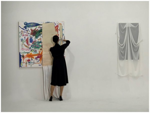 퍼포먼스는 다소 충격적이었다. 하지원 작가의 작품이 공개됨과 동시에 작품의 절반을 훼손하는 충격적인 퍼포먼스가 실시간으로 진행됐다.