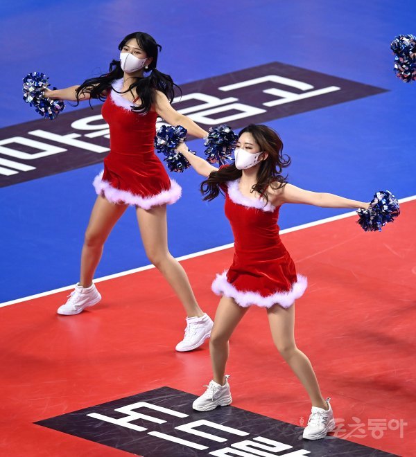 23일 화성종합경기타운 실내체육관에서 열린 ‘2021~2022 도드람 V-리그’ 여자부 IBK기업은행과 한국도로공사 경기에서 IBK기업은행 치어리더가 공연을 펼치고 있다.