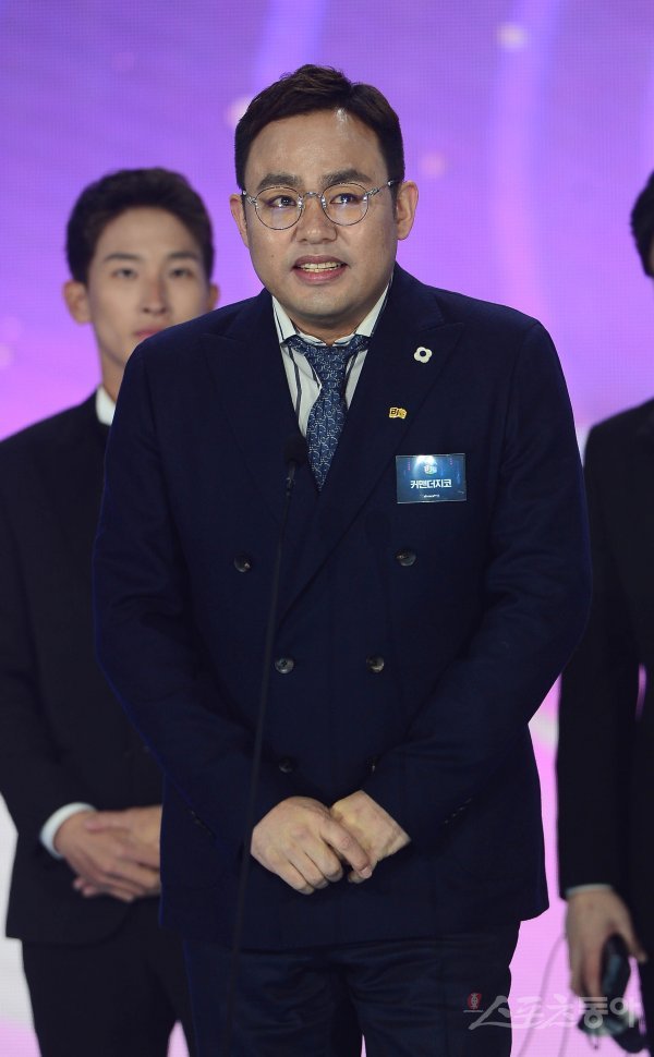 24일 서울 서초구 양재동 aT센터 전시장에서 열린 ‘NH콕뱅크와 함께하는 2021 아프리카TV BJ대상’ 시상식에서 부문별 올해의 상 토크BJ를 수상한 커맨더지코가 소감을 말하고 있다.
