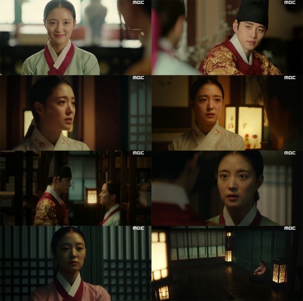 이후 대비(장희진 분)의 주도로 홍덕로(강훈 분)의 누이인 원빈 홍씨가 이산의 후궁으로 간택됐다. 원빈의 처소로 향한 이산을 기다리는 덕임의 표정 위로 “이 곳에 앉아 밤새 전하를 기다리는 일은 그저 내게 주어진 임무일 뿐. 그러니까 다른 생각은 할 필요 없어. 기다리는데 익숙해져야만 해. 나는 그저 지존을 모시는 궁녀일 뿐이다.” 라는 나레이션이 담담하게 흘러 먹먹함을 더했다. 이세영의 절제된 목소리와 눈빛이 돋보이는 장면이었다.