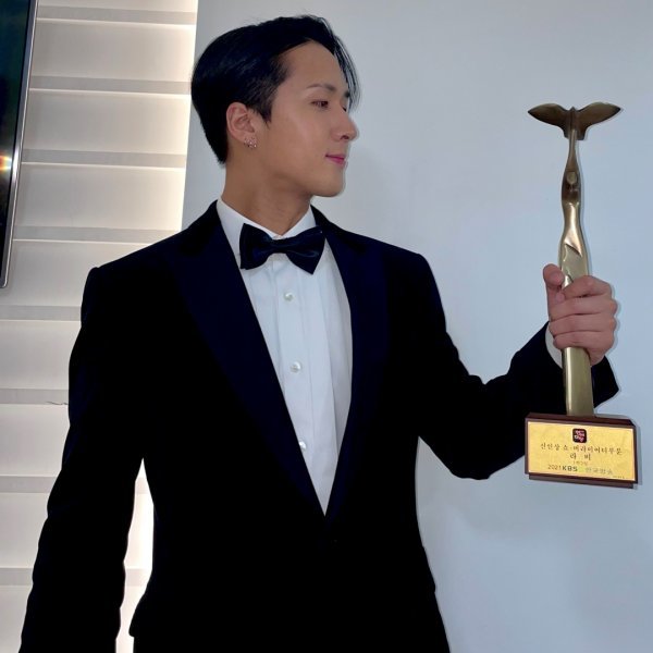 가수 라비(RAVI)가 \'2021 KBS 연예대상\'에서 쇼·버라이어티 부문 신인상을 수상했다.