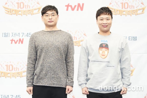 박영진, 이상준이 28일 온라인으로 진행된 tvN ‘코미디빅리그’ 10주년 기념 기자간담회에 참석해 포즈를 취하고 있다.