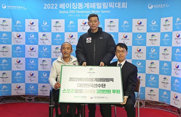 국민체육진흥공단에서 발행하는 체육진흥투표권 스포츠토토의 수탁사업자 ㈜스포츠토토코리아가 2022베이징동계패럴림픽 출전을 준비하고 있는 대한민국 선수단을 위해 대한장애인체육회에 후원금을 전달했다.서울 송파구 올림픽공원 내 벨로드롬에서 진행된 이번 후원식은 신종 코로나바이러스 감염증(코로나19) 확산의 장기화로 인해 어려운 여건에서 훈련하는 선수들의 사기 진작과 함께 내년 3월 열리는 베이징동계패럴림픽에서 경기력 향상을 도모하기 위해 마련됐다.