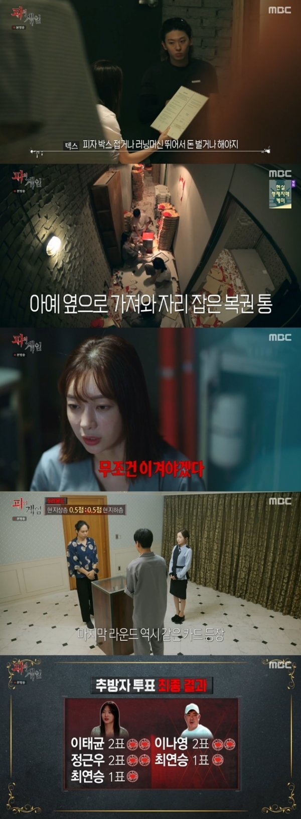 MBC 서바이벌 리얼리티 예능 ‘피의 게임’ 지하층과 지상층의 마지막 팀전이 펼쳐졌다.