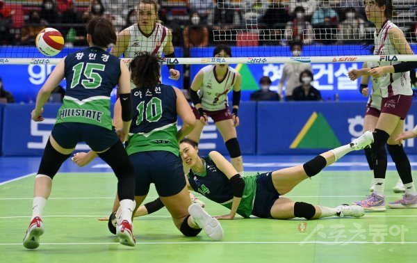 4일 수원체육관에서 열린 ‘2021~2022 도드람 V-리그’ 여자부 현대건설과 KGC인삼공사 경기에서 현대건설 양효진이 디그에 성공하고 있다. 수원 | 김종원 기자 won@donga.com