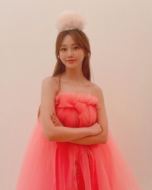 또 홍지윤은 글과 함께 자신의 모습이 담긴 사진을 올렸다. 사진 속 홍지윤은 분홍색 오프 숄더 드레스를 입은 채 포즈를 취하고 있다.