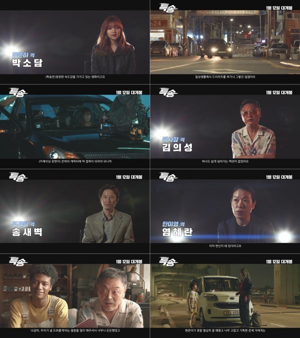 마지막으로 세 번째 키워드 ‘Match’에서는 배우들 간 아낌없는 칭찬이 오가며 이들의 빛나는 열연으로 완성된 완벽한 앙상블을 예고한다. 특히, 박소담은 함께한 배우들로부터 “소담아 우리가 널 도와줄게”라는 응원 덕분에 든든했다는 훈훈한 분위기의 촬영 현장 비하인드를 전해 배우들의 단단한 결속력으로 다져진 케미스트리를 기대케 했다. 박소담 배우를 비롯한 백강산업의 ‘특송팀’ 김의성, 한현민은 물론 악랄한 악역의 송새벽, 특송 의뢰인과 인간 수하물인 연우진, 정현준 그리고 또 다른 추격자 염혜란까지 한 명도 빠짐없이 압도적인 존재감을 발산해 이들의 환상적인 시너지가 어떻게 담겼을 지 궁금증을 자극한다.