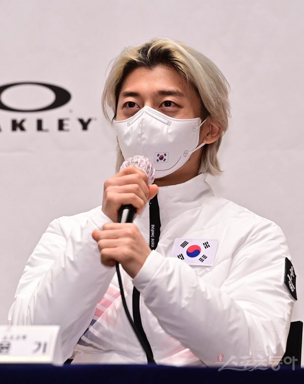 5일 충북 진천국가대표선수촌에서 열린 ‘2022 베이징 동계올림픽 G-30 미디어데이’ 대한민국선수단 합동 기자회견에서 쇼트트랙 곽윤기가 취재진의 질문에 답하고 있다.