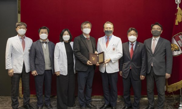 지난해 12월30일 진행하는 전달식에는 동기회 회장인 조방현 교우를 비롯해 안암병원 산부인과 홍순철 교수, 순환기내과 박성미 교수 등 동기 대표들과 김영훈 의무부총장과 윤영욱 의과대학장, 김병조 의무기획처장 등 의료원 주요 보직자들이 참석했다.
