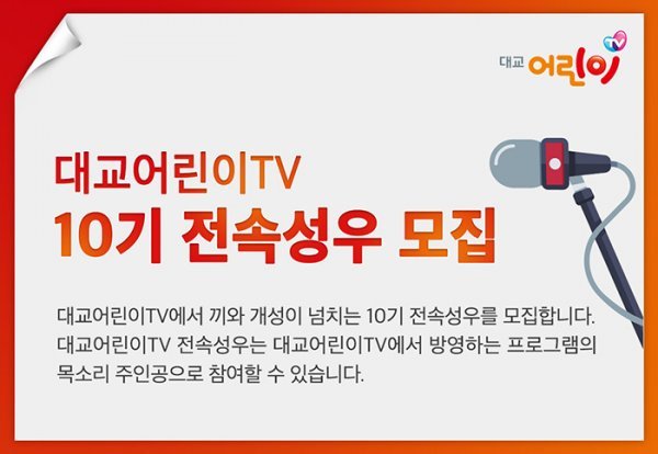 대교그룹의 대교어린이TV가 ‘10기 전속성우’를 공개 모집한다.