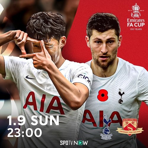 9일 일요일, 21-22 잉글랜드 FA컵 64강에서 토트넘이 모어컴과 맞대결을 펼친다. 카라바오 컵 준결승 1차전을 패배한 토트넘은 3부 리그 소속인 모어컴을 상대로 분위기 전환에 도전한다. 빠듯한 일정을 치르고 있는 손흥민의 이번 경기 출전 여부에도 관심이 모인다. FA컵 토트넘 대 모어컴 경기는 9일 일요일 밤 11시 스포티비 온(SPOTV ON)에서 독점 생중계되며, PC/모바일 중계는 스포티비 나우(SPOTV NOW)에서 만날 수 있다.