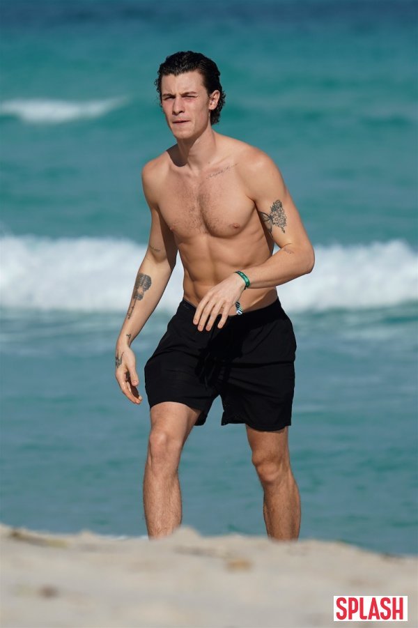 스플래시닷컴은 7일(현지시각) 미국 플로리다주 마이애미 해변에서 해수욕을 즐기는 숀 맨데스 모습을 공개했다.
