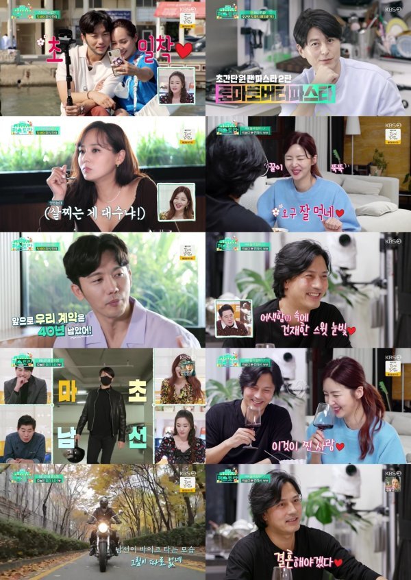 이어 두 사람은 두바이 시장에서 향신료를 탐방에 나섰다. 사프란 등 다채로운 향신료의 향연은 놀라움을 선사했다. 이후 부부가 찾은 곳은 세계적인 스타 셰프 \'솔트 배\'의 스테이크 레스토랑이었다. 소금을 뿌리는 시그니처 퍼포먼스와 함께 이색적인 요리들이 연이어 등장했다. 원조 요정 유진은 허리띠를 풀고 초특급 먹방을 선보였다. 기태영은 잘 먹는 유진을 사랑스럽게 바라보며 달달한 부부애를 과시했다.