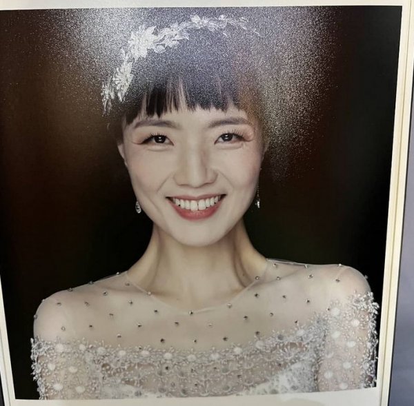 함께 공개한 사진 속 안영미는 웨딩드레스를 입고 활짝 웃고 있다. 청순한 분위기에 \'주름\' 따위는 눈에 들어오지도 않는다.