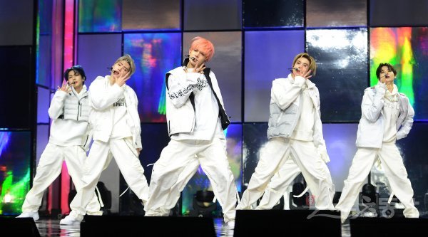 그룹 엔하이픈(ENHYPEN)이 10일 서울 광진구 광장동 예스24 라이브홀에서 열린 정규앨범 1집 ‘DIMENSION: ANSWER‘ 발매 쇼케이스에서 타이틀곡 ’Blessed-Cursed’ 무대를 펼치고 있다.