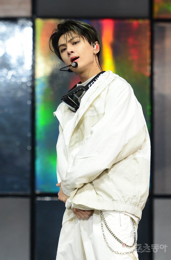그룹 엔하이픈(ENHYPEN) 제이가 10일 서울 광진구 광장동 예스24 라이브홀에서 열린 정규앨범 1집 ‘DIMENSION: ANSWER‘ 발매 쇼케이스에서 타이틀곡 ’Blessed-Cursed’ 무대를 펼치고 있다.