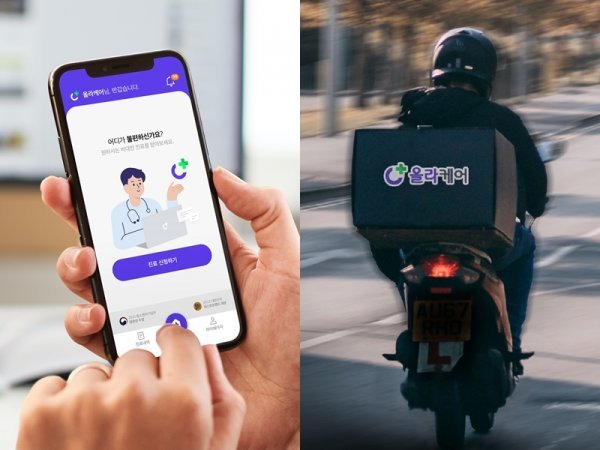 코로나19 사태로 정부가 2020년 2월 한시적으로 원격진료를 허용한 이후 비대면 원격진료 플랫폼 기업들의 성장이 가파르다. 비대면 진료 플랫폼 ‘올라케어’ 앱(왼쪽)과 의약품 전문 라스트 마일 배송 서비스 ‘올라딜리버리’. 사진제공|올라케어