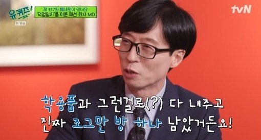 임민영 팀장이 "입사 전에 결혼을 했다. 다행히 아내랑 저랑 취미가 맞았다"고 하자 유재석은 "나는 집에서 거의 모든 공간을 다 우리 아이들의 장난감과 학용품에 다 내주고 진짜 작은 방 하나 남았다"고 불만을 토로했다.